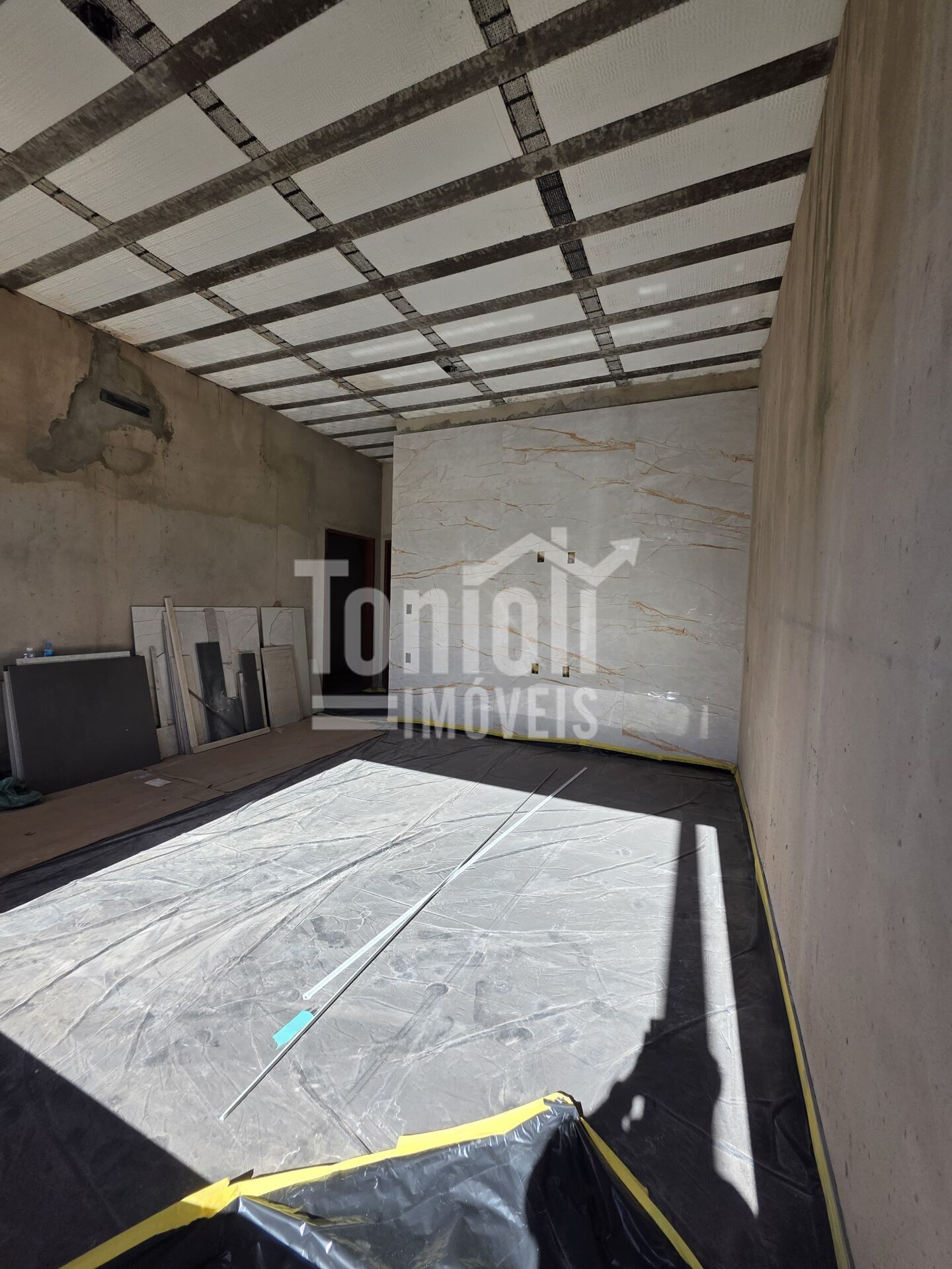 A casa está coberta de plástico devido a proteção nos pisos e revestimento! E a limpeza também!